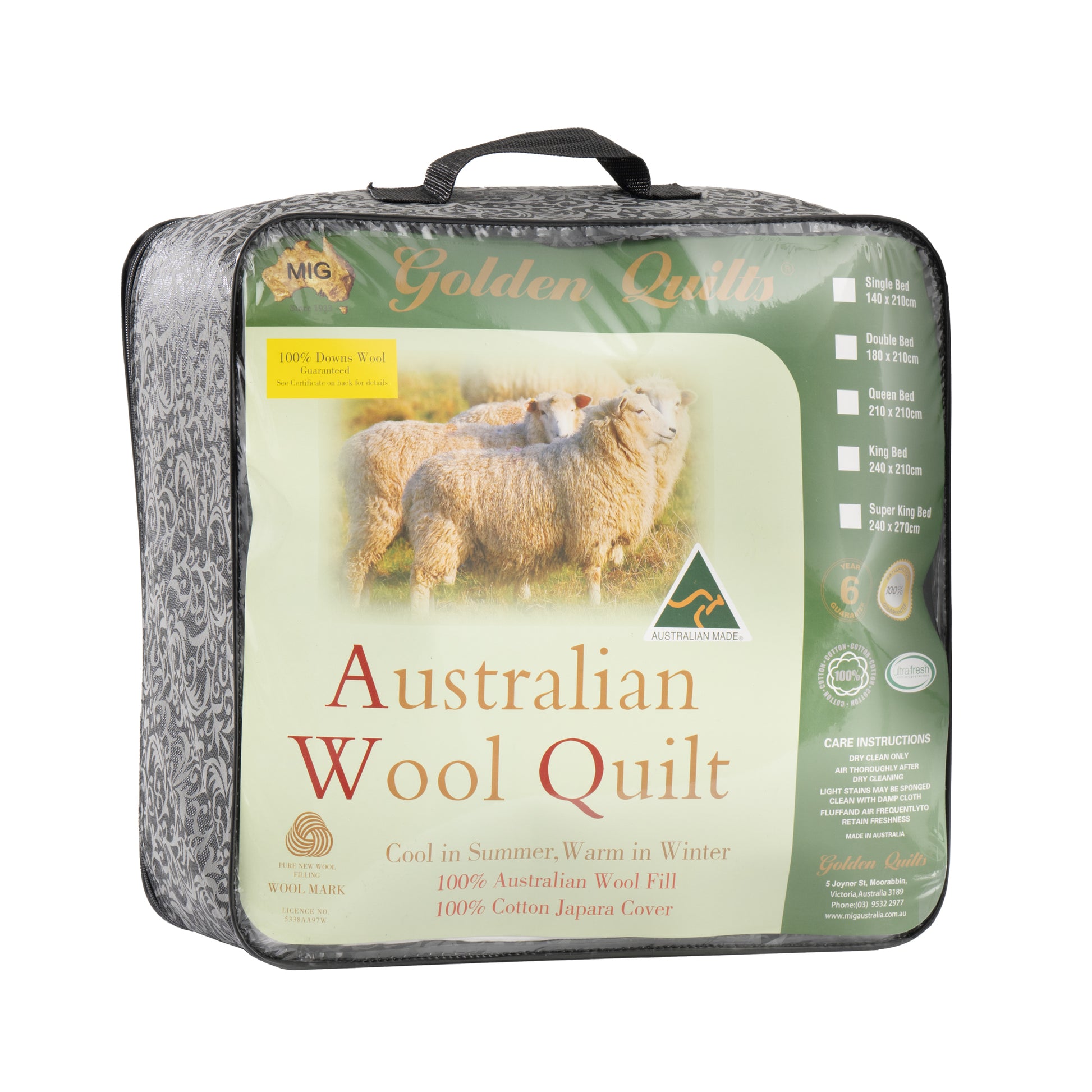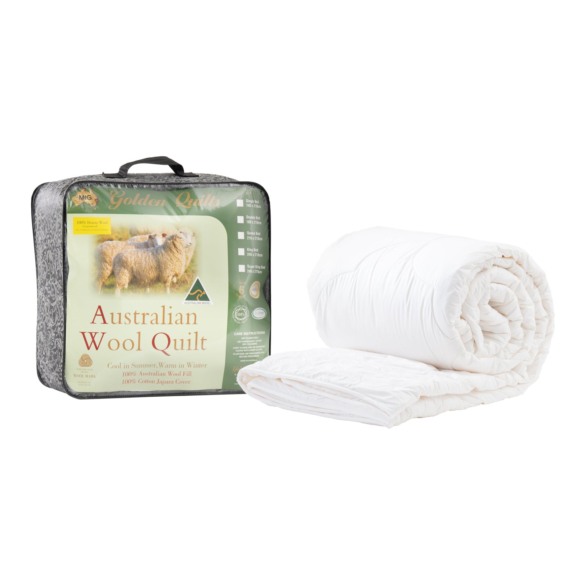 Made with Australia's finest sheep's wool, this quilt contains the highest grade Australian wool. It's filled with 100% Australian wool and covered with 100% white cotton japara fabric. The wool in this quilt has a natural drape so it wraps around the body without effort. Available in 3 GSM's (grams per square meter) suitable for summer, winter and all year round.