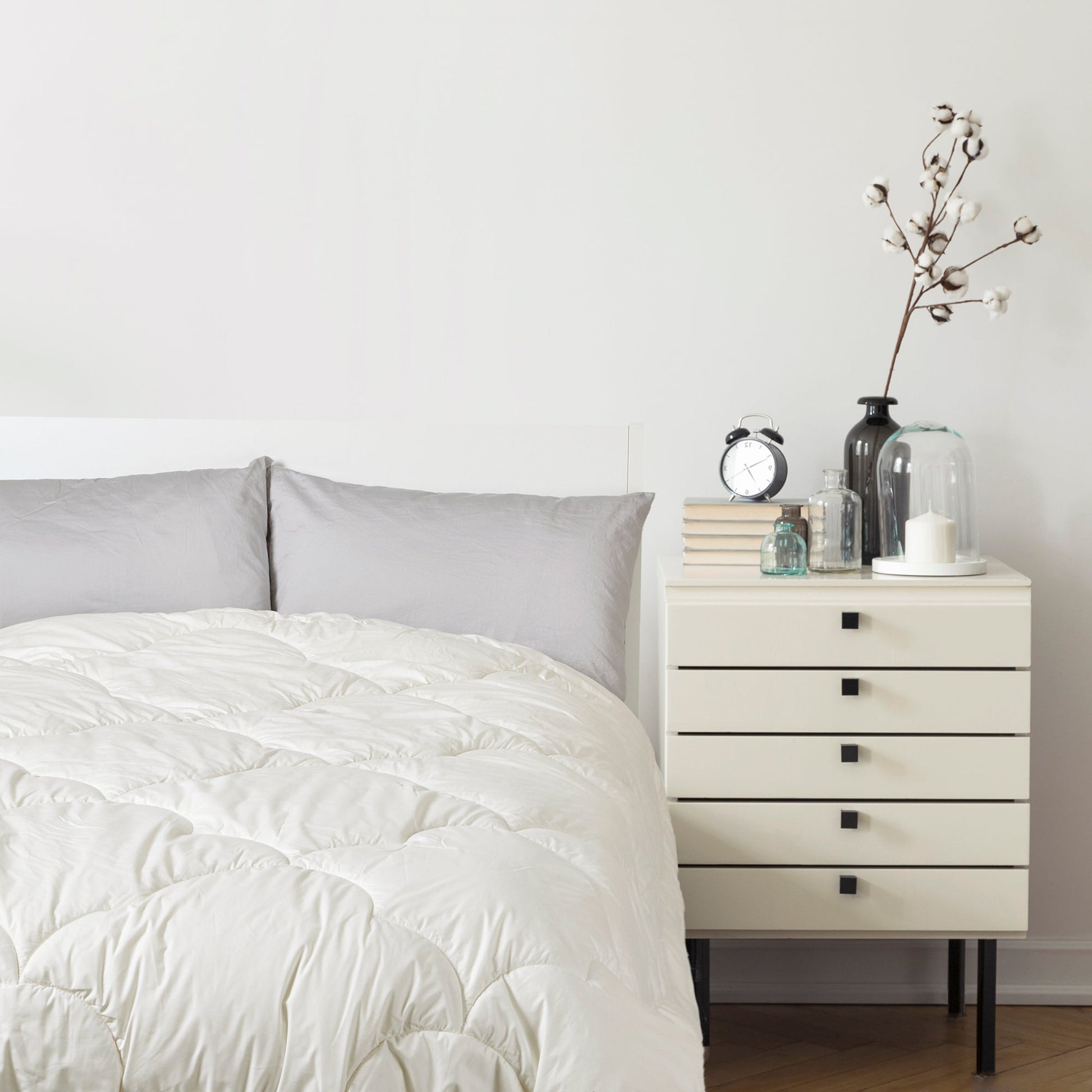 Made with a blend of Australia's finest sheep's wool, this quilt contains the highest grade Australian wool. It's filled with a blend of Australian wool and polyester and is covered with 100% white cotton japara fabric. The wool in this quilt has a natural drape so it wraps around the body without effort. Suitable for all seasons.